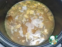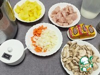 Добавляем в чашу бульон и картофель - Режим "Тушение/Суп" 25 минут. |
