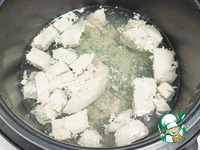 Отправляем в чашу воду и куриное филе — Режим «Тушение/Суп» 40 минут. |