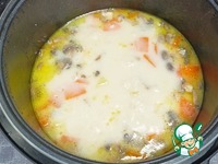 Добавляем в чашу кусочки сыра и курицу (можно и зелень) - Режим "Тушение/Суп" 20 минут. |