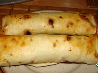 Заверните как вам удобно... или с двух сторон заворачиваем... как бы навстречу друг к другу и в середину кладем сыр... или просто как шаурму в трубочку.. |