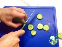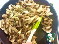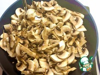 После чего шампиньоны нарезаем тонкими слайсами. |