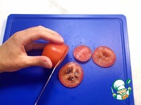 Потом чиабатту разрезаем на 2 половинки, на чиабатту кладем сыр и отправляем в духовой шкаф, разогретый до 180 градусов на 5 минут. |