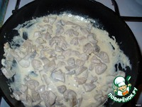 Посолить и поперчить по вкусу и немного присыпать мукой, перемешать, немного еще обжарить (1 мин.), влить сливки, хорошо перемешать и потушить, чтобы сливки немного уварились. |