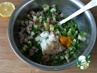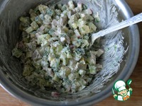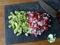 Смешиваем все перечисленные порезанные ингредиенты. |
