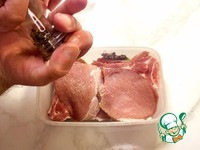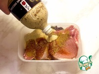 После чего мясо приправляем солью, черным молотым перцем, приправой для мяса, паприкой, сушеным чесноком. |