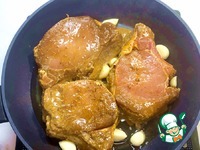 Затем на разогретую сковороду наливаем подсолнечное масло, туда же отправляем чеснок, кладем стейки и обжариваем их по 3 минуты с каждой стороны. |