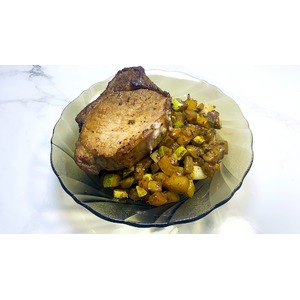 Описание: Вкусный и полезный свиной стейк на овощной подушке