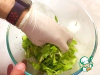Листья салата довольно крупно нарезаем. |