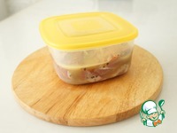 Перекладываем баранину вместе с маринадом в контейнер. Пока едем на природу - всё прекрасно замаринуется. |