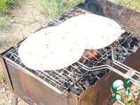 На готовый шашлык выкладываем лаваш, чтобы прогреть. |