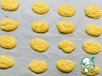 Противень застелить пекарской бумагой, с помощью кондитерского мешка выложить тесто, я выкладывала чайной ложкой (как вам удобно) |
