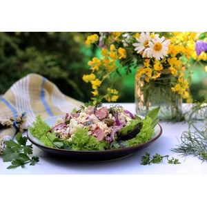 Описание: Улетный салат! Приготовьте его и комплименты вам будут обеспечены, это очень вкусно, сытно, не сложно. Такой салат будет отличной закуской и на пикнике, и на праздничном столе.