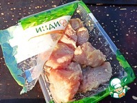 Шашлык ТМ Индилайт уже готовый, с цедрой лимона. Кусочки крупные, белое мясо грудки. |