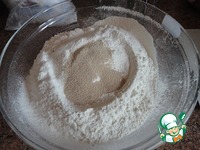 Просеянную муку смешайте с дрожжами, |