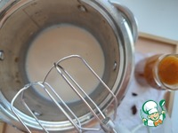 Смешиваем сироп с молоком, ставим на плиту и взбиваем миксером, доведя до кипения. Это всё происходит очень быстро, буквально пару минут. |