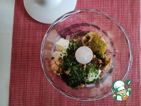 Яйца, слегка подсушенные орехи, масло, соль, петрушку и хмели-сунели поместить в блендер |