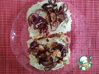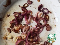 Лук нарезать тонкими кольцами, поджарить на растительном масле на маленьком огне с добавлением горсточки сахара. Лук должен стать мягким, карамелизированным. |