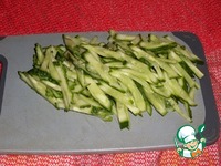 Затем поверх грибов и сыра выкладываем нарезанные огурцы. Добавляем поверх огурцов 1,5 ч. л. творожного сыра с зеленью. |
