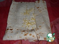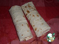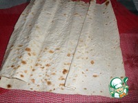 Подготовим лаваш, если необходимо разрезаем его на части. (У меня лаваш-ролл длиной 1 м, поэтому я разрезала его на 2 части. |