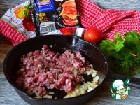 Мякоть помидора нарезать кубиком, добавить. Жарить, помешивая, 3 минуты. Нарубить зелень, добавить. Посолить по вкусу. Не перчить, т. к. используется сыр чили-чиз. |