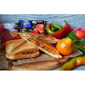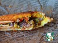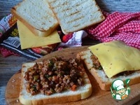 Описание: Сэндвичи, как правило, я собираю из "всего" что на этот момент в холодильнике. Вот такой, например, сегодня - с жареным фаршем, печёными овощами и ломтиками сыра Чили - Чиз. Если будете готовить для детей, возьмите другой сыр, в ассортименте ТМ Hochland их огромный выбор. Рекомендую.