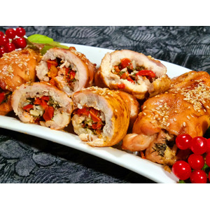 Описание: Нежные сочные, сытные куриные рулетики с ароматной начинкой на праздник или на семейный ужин. Можно готовить абсолютно из любого мяса!
