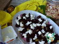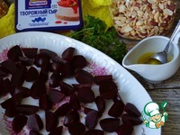 Свёклу почистить, нарезать на кусочки удобные для еды. Разложить на сервировочное блюдо. Смешать 1 ст. л. оливкового масла, щепотку соли и молотый чеснок, полить свёклу. |