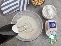 1. Яйца взбейте с сахаром до пышной белой массы. |