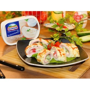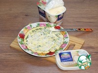 7. Тонким слоем смажьте омлеты плавленным сыром. |
