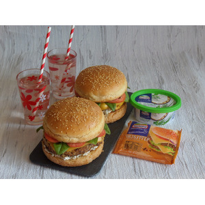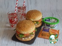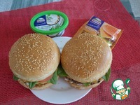 Описание: Огромный бургер с котлетой из куриного филе, в которую для сочности добавила молоденький кабачок. Особую пикантность придает соус на основе творожного сыра и, конечно же, ломтики плавленного сыра ТМ Хохланд. Попробуйте!