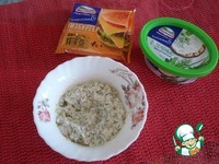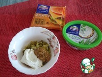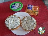 Нижнюю часть булочек смазываем приготовленным соусом на основе творожного сыра. |