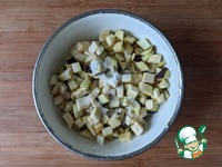 Баклажан режем мелкими кубиками, засыпаем солью, перемешиваем, оставляем на 15 минут. |