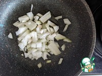 Лук чистим, режем мелкими кубиками. На горячую сковороду наливаем половину масла, кладём лук. |