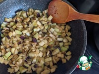 Баклажаны промываем под проточной водой, отжимаем. На сковороду добавляем оставшееся масло, кладём баклажаны, обжариваем на среднем огне около 15 минут, помешивая. |