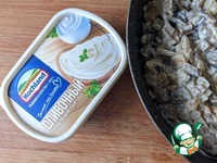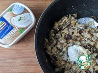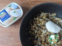 Добавляем к смеси плавленый сыр, у меня - HOCHLAND сливочный. Перемешиваем до растворения сыра. |