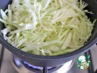 Затем добавить нарезанную тонкой соломкой капусту, перемешать и тушить до мягкости около 10 минут, постоянно помешивая. |