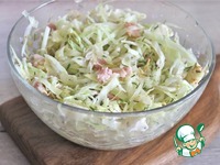 Тушеную капусту с беконом выложить в чашку, немного остудить. Посолить и приправить по вкусу, добавить мелко нарезанную зелень укропа. |