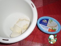 Приготовим крем. В чашу миксера выкладываем творожный сыр, сметану и сахарную пудру. |