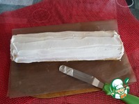 Испеченный медовый корж снимаем с противня и сворачиваем в рулет. Оставляем на 15 минут для остывания. |