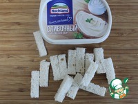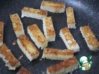 У хлеба срезать корки и разрезать на палочки-не делайте длинными. |