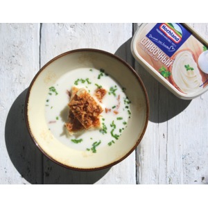 Описание: Суп на раз два. Вкусный, легкий и сытный! Очень элегантный вкус - сливочность плавленного сыра ТМ Hochland, послевкусие белого вина, хрустящий лук и гренки, небольшая острота. Пробуем?