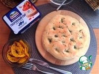Описание: Фокачча - пшеничная лепёшка, которую готовят из различных видов теста - либо дрожжевого, которое является основой для пиццы, либо пресного сдобного. (Википедия) Такая лепёшка вкусна сама по себе, а если намазать её ещё и творожным сыром HOCHLAND крем-чиз - это объеденье. А если ещё запечь кусочки тыквы с итальянскими травами да с оливковым маслом и поместить их поверх сыра - безумное объеденье!
