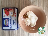 Творожный сыр смешайте с лимонным соком и горчицей. |