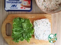 Креветки добавьте в оставшуюся творожную массу, перемешайте. На нижние ломтики хлеба положите по листу салата. |