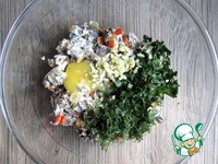 Немного остудите и выложите в миску. Добавьте зелень, чеснок и яйцо. |