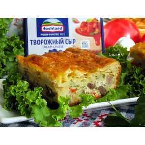 Описание: Теплый заливной пирог с куриными желудочками, сладким перцем и творожным сыром ТМ Hochland можно смело подавать на ужин, дополнив салатом из свежих овощей. Просто, вкусно и сытно. Попробуйте!