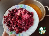 Достаем сельдерей и добавляем натертую свёклу, оставшийся чеснок и вишню. Провариваем после кипения 5-10 минут. |