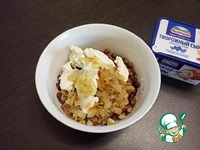 К варёной фасоли положить творожный сыр ТМ Hochland и остывший лук. |