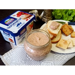 Измельчить всё блендером. Поставить в холодильник охладиться. К паштету подать подсушенные ломтики хлеба, галетное печенье, чипсы. |