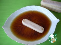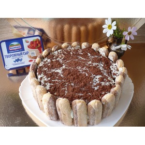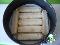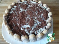 Сверху выложите еще ряд печенья савоярди, смоченного в кофе и покройте новым слоем приготовленного крема. Повторите процесс, чтобы заполнить всю форму. Последний слой торта намажьте кремом и поставьте торт в холодильник на 1 час. Затем растопите белый шоколад и вылейте его на верхний слой торта. Посыпьте на шоколад оставшейся частью какао-порошка, слегка постукивая тарелкой по рабочей поверхности, чтобы придать торту мраморный вид. Приклейте с помощью растопленного шоколада печенье савоярди с какао по всей окружности торта.